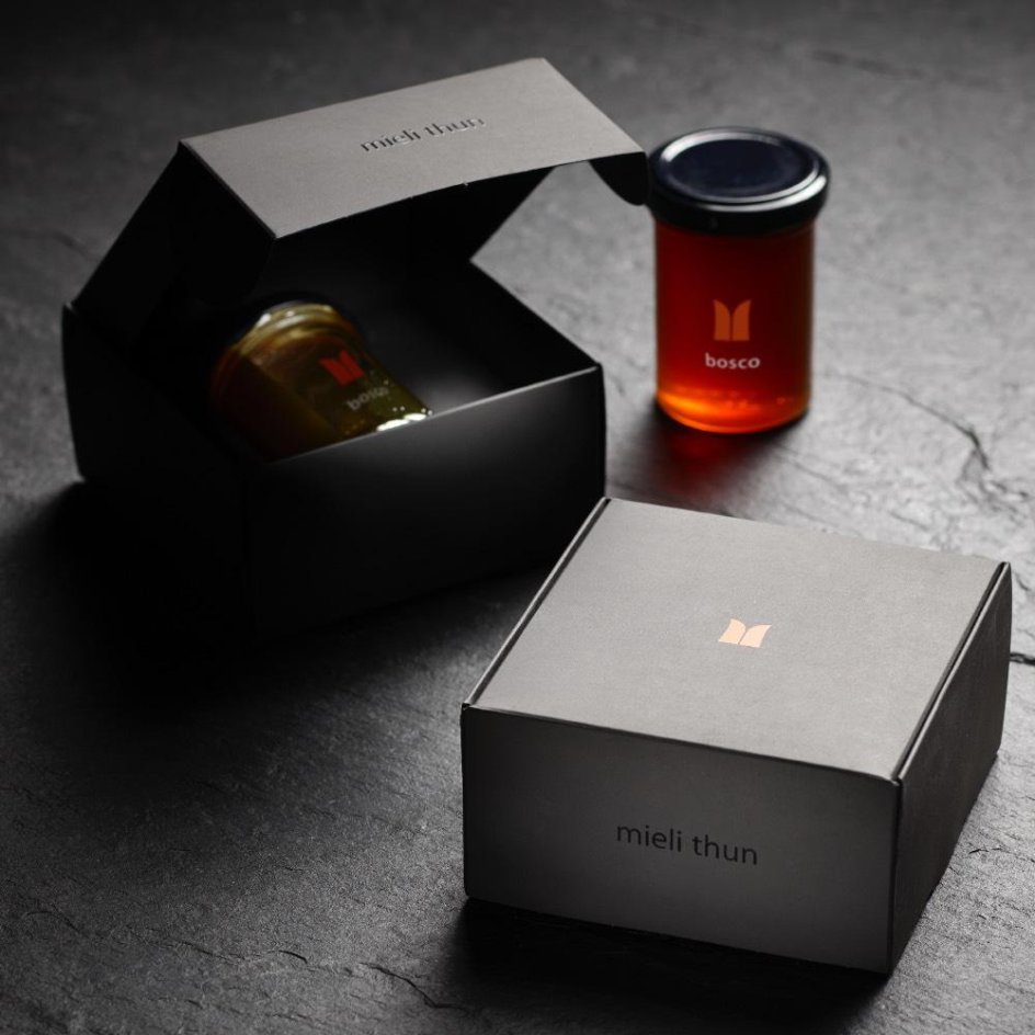 The gift box Unique Pleasure is dedicated to forest honey, a dark and intense honey, always liquid and never overly sweet, capable of conveying the mysteries and nuances of the forest. The jar of honey is housed inside an elegant black box.